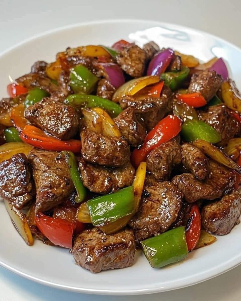 Serve the pepper steak stir fry over cooked rice or noodles.